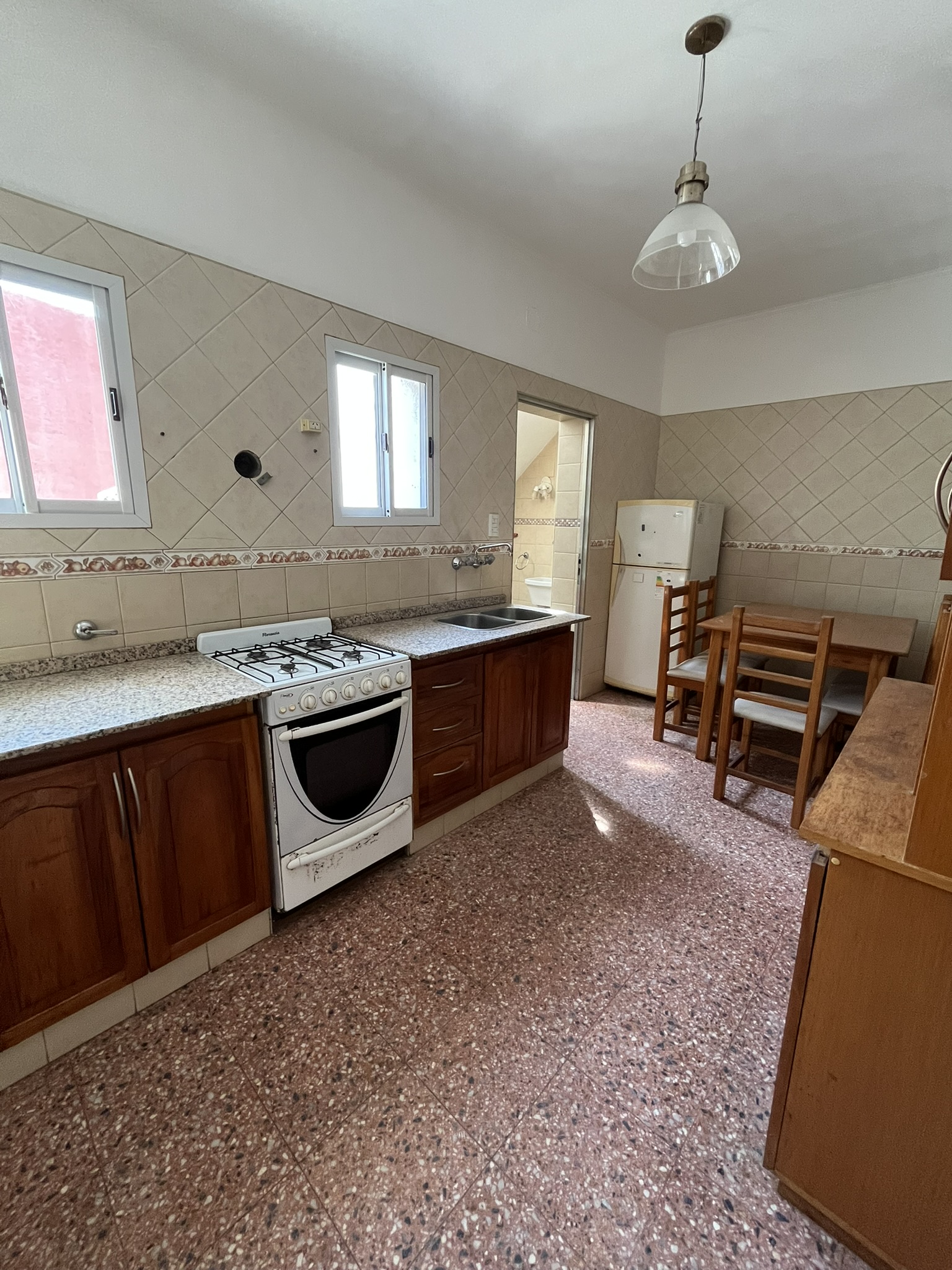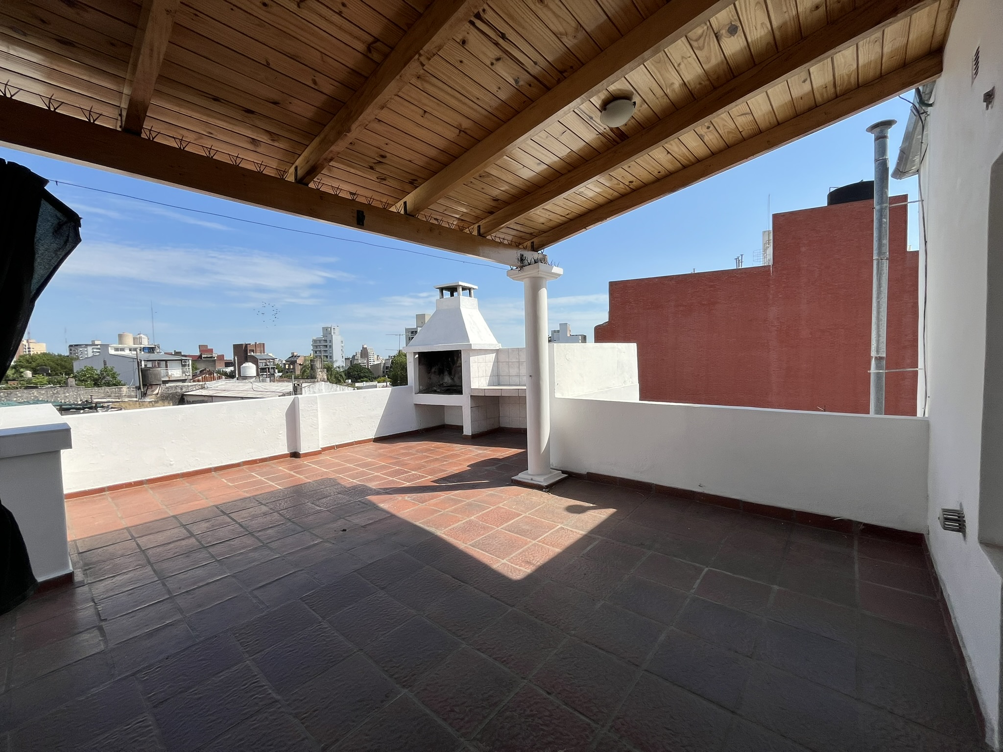 | Departamento interno en planta alta, distribuido en dos niveles. Primer nivel tres dormitorios amplio comedor, cocina , baño. Segundo nivel hermoso y muy amplio quincho con segunda cocina. baño, pequeño dormitorio. lavadero y terraza con churrasquera. |